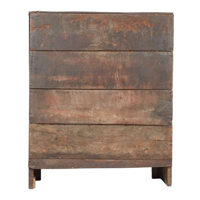the upper part with two doors divided by a recessed panel, above a centre door flanked by further recessed panels, over a shaped apron and open undertier, raised on stile legs