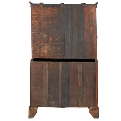 the projecting moulded cornice over three short and three long graduated drawers, the lower part with three further long graduated drawers, raised on bracket feet