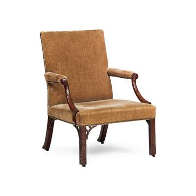 GEORGE III MAHOGANY 'CHINESE CHIPPENDALE' LIBRARY ARMCHAIR