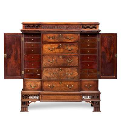 GEORGE III MAHOGANY 'CHINESE CHIPPENDALE' ESTATE CUPBOARD