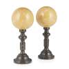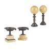 to include a pair of tazza with lion masks, 13cm high; and a pair of orbs on turned black marble stands (4)