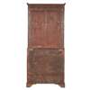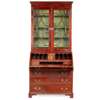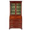 the moulded cornice above astragal glazed doors enclosing adjustable shelves; the lower part with a sloping fall enclosing a fitted interior, above four graduated drawers, raised on bracket feet