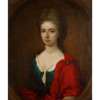 Feigned oval, oil on canvas, and a companion, a pair, 'Young Woman in Red Dress (2)