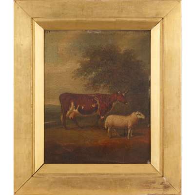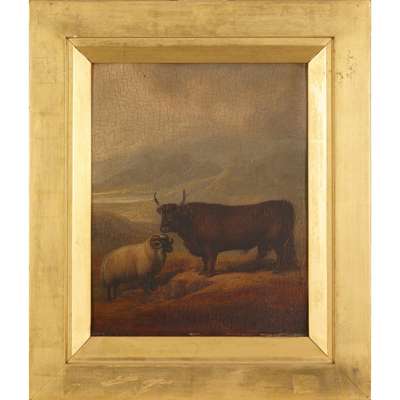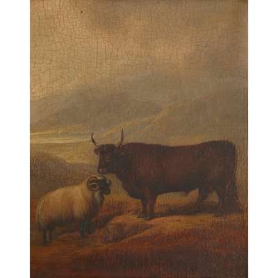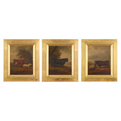 Signed, inscribed and dated 1815 on the reverse, oil on panel, and two others by the same hand, ‘Galloway Bull’ and ‘Argyllshire Cow and Cheviot Ram’ (3)