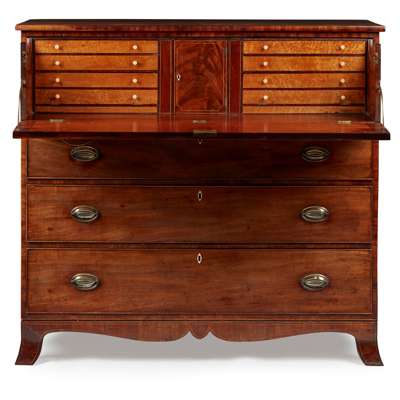 GEORGE III MAHOGANY SECRETAIRE CHEST OF DRAWERS Y