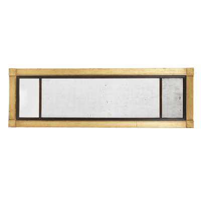 REGENCY GILTWOOD AND EBONISED TRIPLE PLATE OVERMANTEL MIRROR
