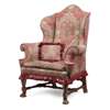 PAIR OF WILLIAM AND MARY STYLE WINGBACK ARMCHAIRS AND FOOTSTOOL