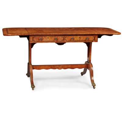 REGENCY YEW, EBONY, AND SYCAMORE BANDED SOFA TABLE