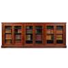 the banded top with a projecting moulded edge above three pairs of glazed doors enclosing adjustable shelves, on a plinth base
