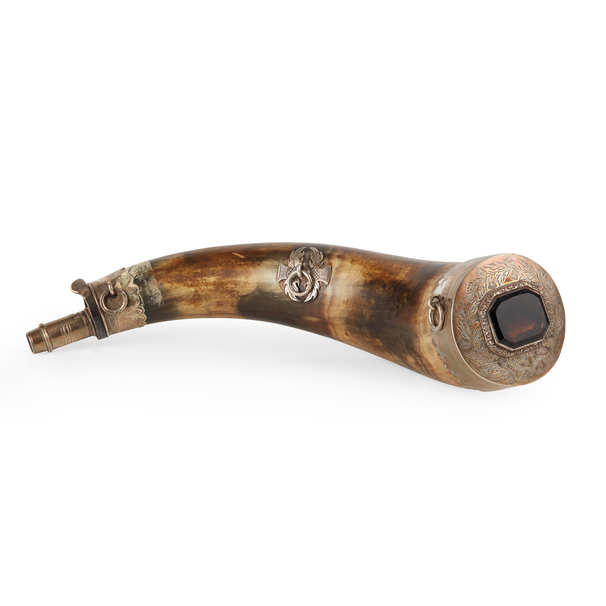 SCOTTISH WHITE METAL MOUNTED DRESS POWDER HORN