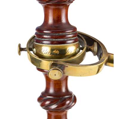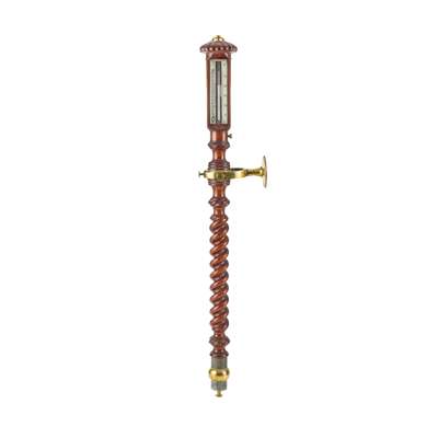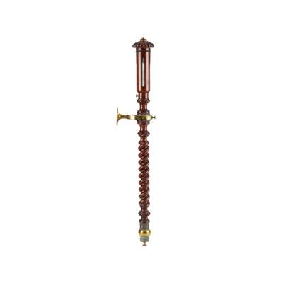 the lobed top with ivory gauge plates inscribed, ‘HILL & PRICE/ OPTICIANS/ BRISTOL’, above a barley-twist body with brass gimbal mechanism and engraved collar, with a weighted terminus and brass cistern cover