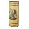 of oval cylindrical form decorated with figural scenes of tea leaf making, on a yellow ground