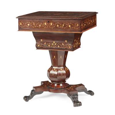 IRISH KILLARNEY ARBUTUS, YEW, AND MARQUETRY WORK TABLE