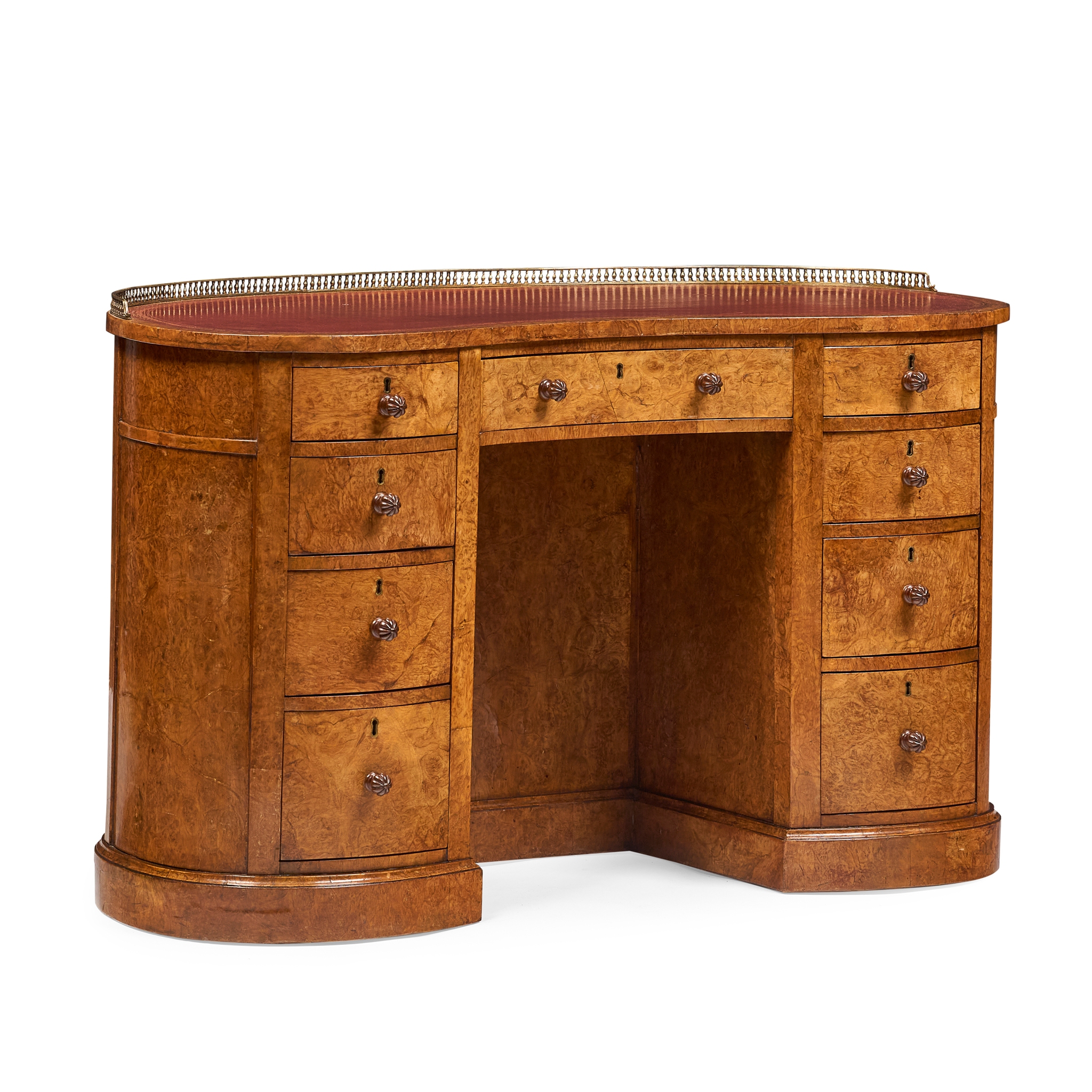VICTORIAN BURR AND POLLARD OAK KIDNEY-SHAPED KNEEHOLE DESK, IN THE MANNER OF GILLOWS