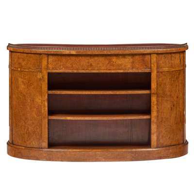 Note: The form of this desk can be traced to a design for 'A Kidney Table,...for reading and writing...: at each end are a number of small drawers' from Thomas Sheraton's The Cabinet-Maker and Upholsterer's Drawing-Book, 1793, pl. 58. The form became very popular during the 19th century. 'An Oak Pedestal and Kidney Table' is found in the Gillows' Estimate Sketch Books, dated 1840, the back also fitted with three shelves. A similar example is illustrated, Susan Stuart, Gillows of Lancaster and London 1730-1840, Woodbridge, 2008, vol. I, pp. 338-339, pl. 393.