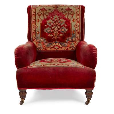 VICTORIAN CARPET UPHOLSTERED EASY ARMCHAIR