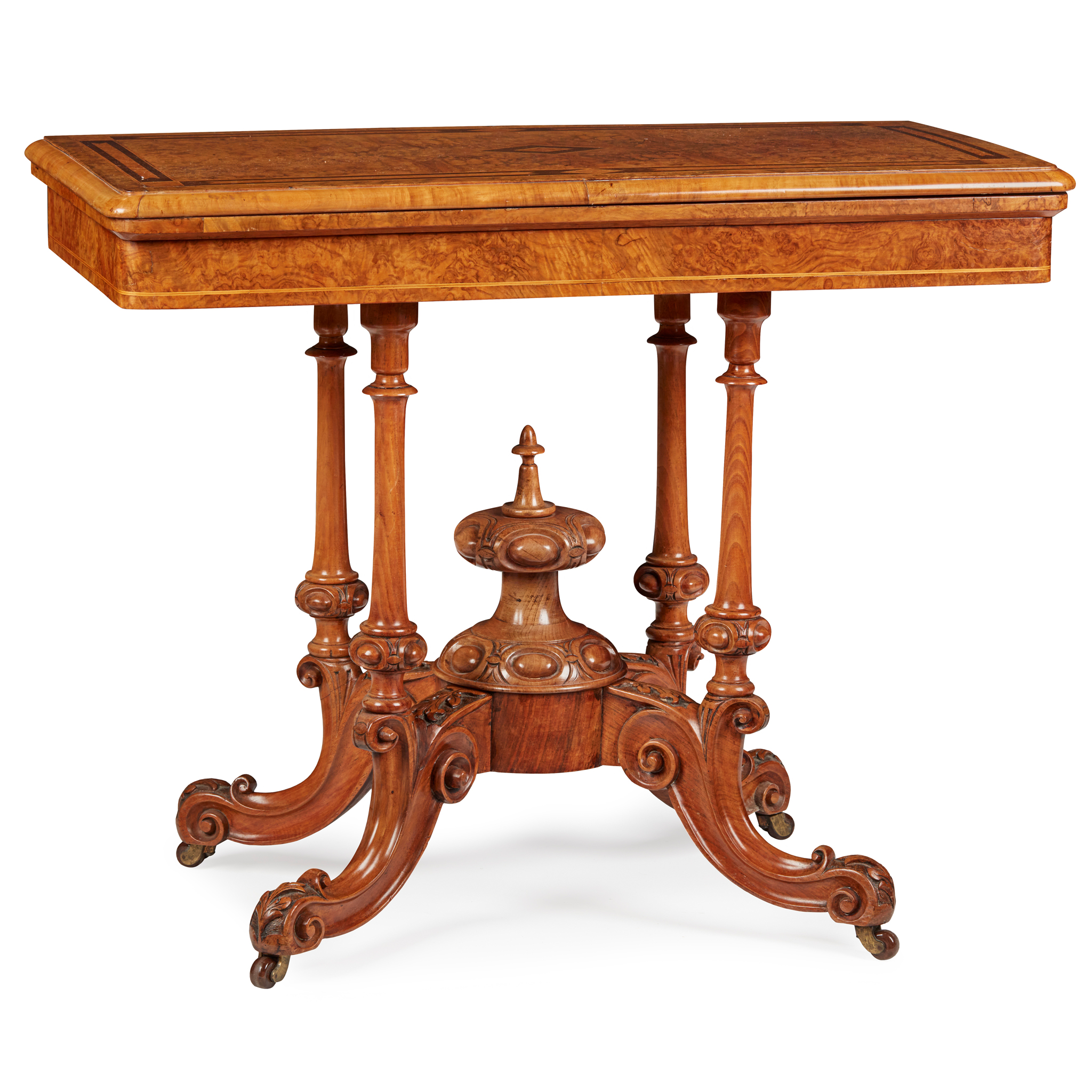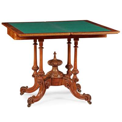 VICTORIAN BURR WALNUT, AMBOYNA, AND CARD TABLE