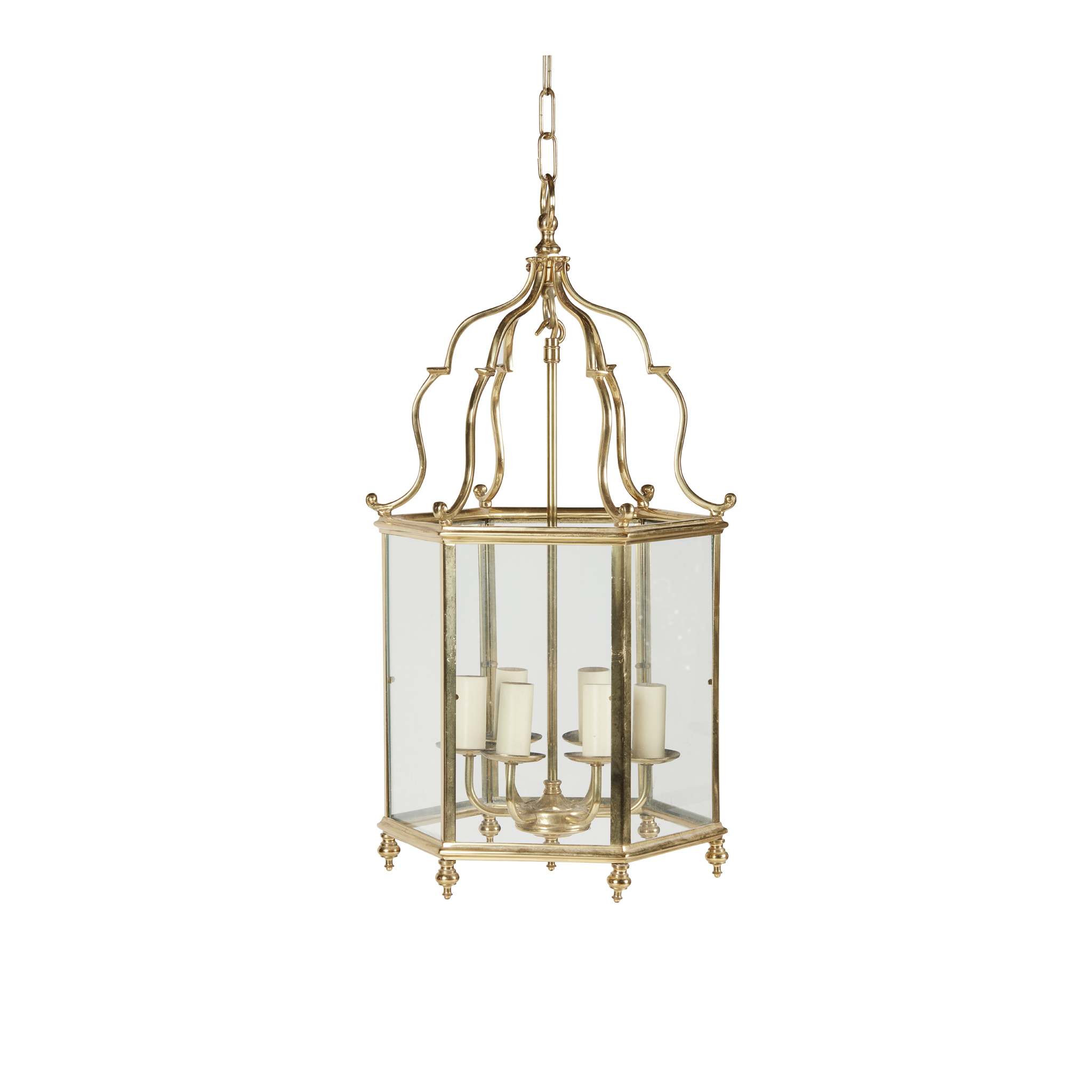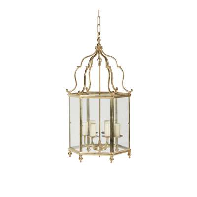 hexagonal form with scrolled corona and six lights