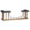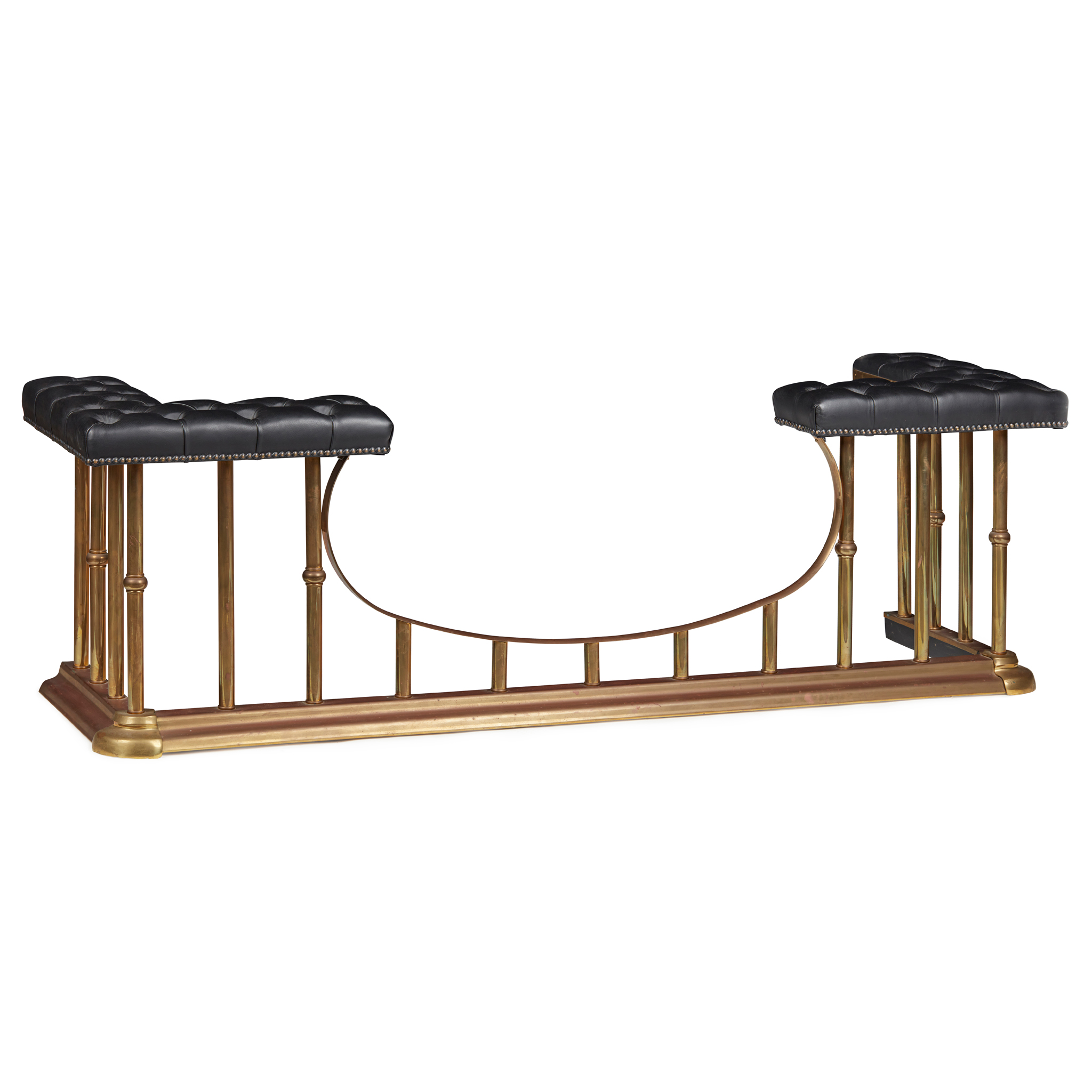 with two L shaped seat pads covered in buttoned black leather, on brass rail supports and moulded base