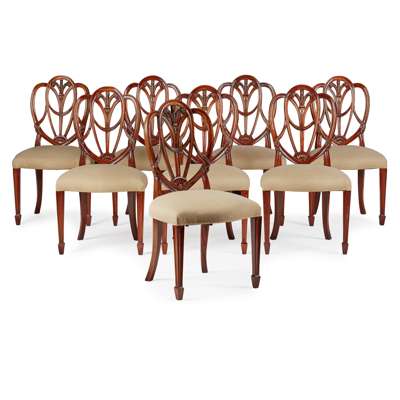 SET OF TEN SHERATON STYLE MAHOGANY DINING CHAIRS