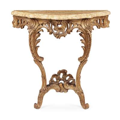 LOUIS XV CARVED GILTWOOD MARBLE TOPPED CONSOLE TABLE