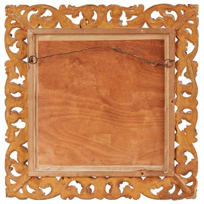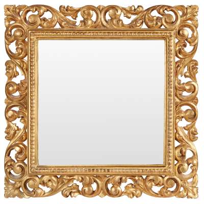 the square mirror plate in a bead moulded and pierced foliate carved frame