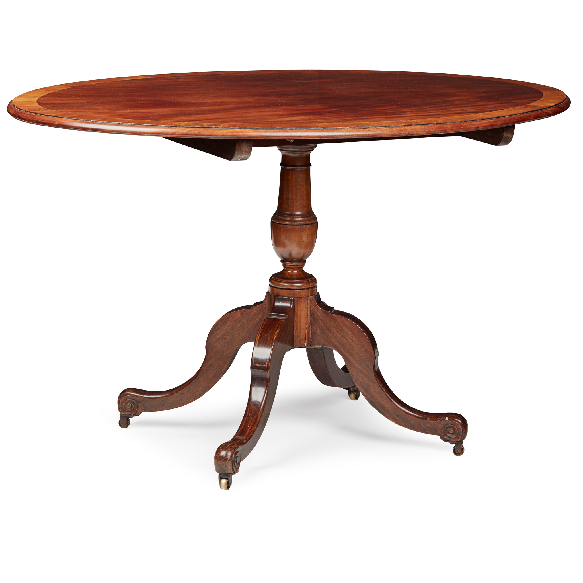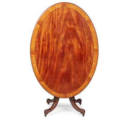 LATE GEORGE III MAHOGANY AND SATINWOOD BANDED OVAL BREAKFAST TABLE