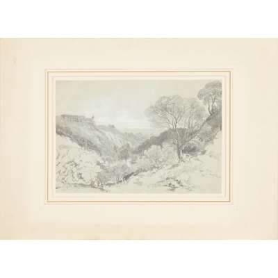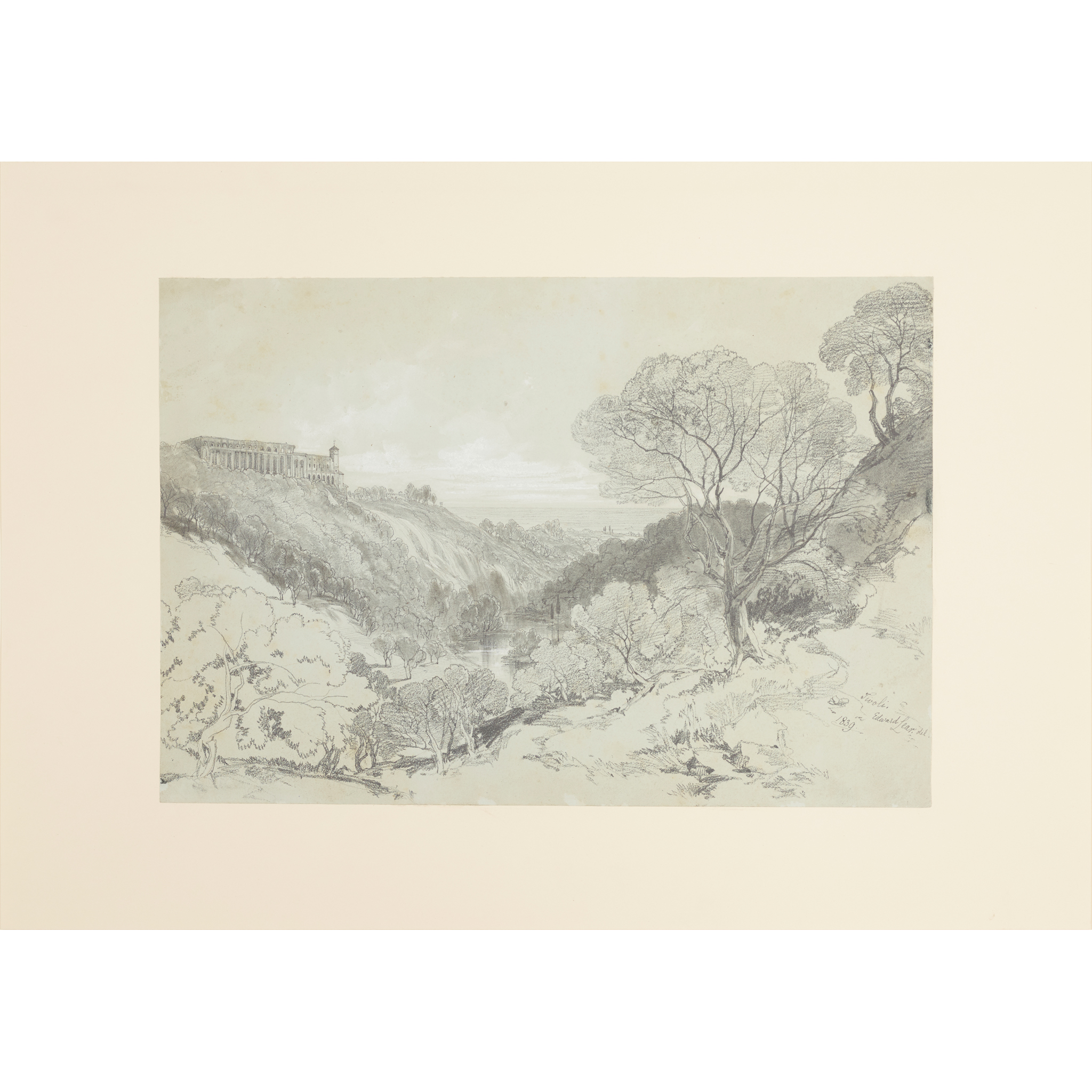 Signed, inscribed and dated 1839, pencil heightened with white on blue/grey paper