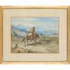 Note: A contemporary label to the backboard reads: 'This drawing has been done from descriptions given on the spot, in January 1879, by Major Bailey, 4th Bat. Rifle Brigade - who saw Dr. Bryden as he came into Jellalabad on the 13th Jan.1842 - Major Bailey served at that time in the 'Illustrious Defence of Jellalabad under Sir Robert Sale and was again in active service at the same place in the late War. The landscape shows part of the walls of Jellalabad with the Caboo Gate and the Ram Koond Mountain nearly 18000 feet high. Sketched on the spot in Jan. 1879. Price 35 guineas.