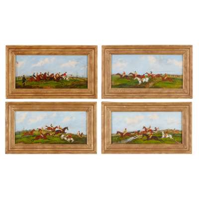 Signed Alken, oil on panel, and three other racing subjects, a set of four (4)