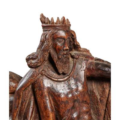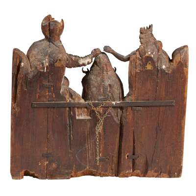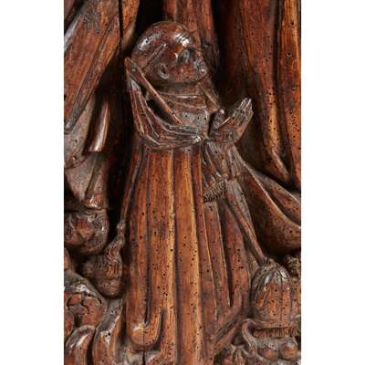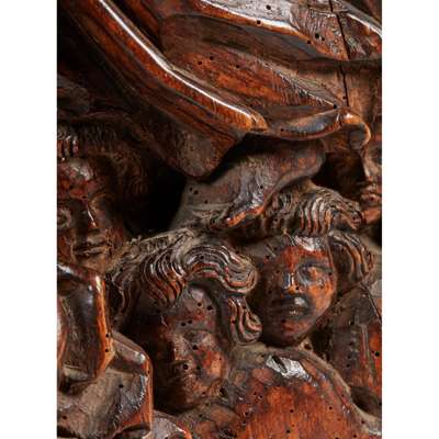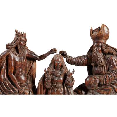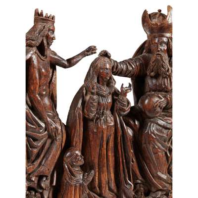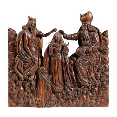 GERMAN CARVED LIMEWOOD PANEL OF THE CORONATION OF THE VIRGIN MARY