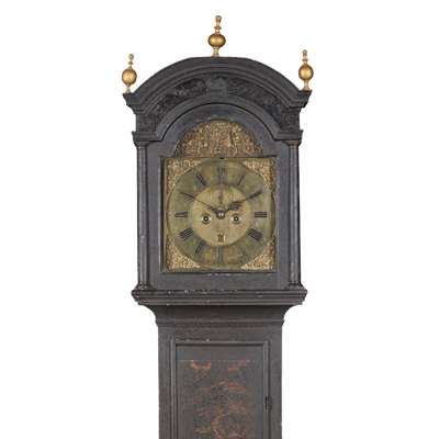 GEORGE II BLACK JAPANNED LONGCASE CLOCK, BY DAVID LESTURGEON, LONDON