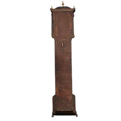 Note: The Lestourgeon clockmaking family is recorded working in London from the end of the 17th century onwards. David Lestourgeon was a Huguenot immigrant from Rouen who settled in Spitalfields around 1681, his son also called David became brother of the Clockmaker Company in 1698 who in turn took in his son again called David as apprentice in 1704 who was not made free until 1721. This youngest David Lestourgeon who worked until 1731 is most likely the maker of the present clock movement.