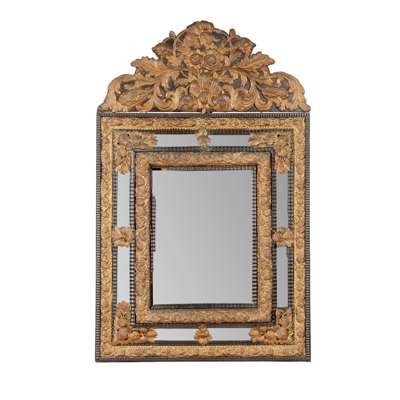 FLEMISH BRASS AND EBONISED MARGIN PLATE MIRROR