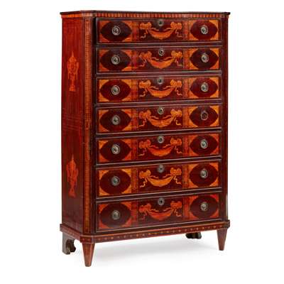 DUTCH ROSEWOOD AND SATINWOOD MARQUETRY CHEST OF DRAWERS Y