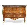 LOUIS XV KINGWOOD, TULIPWOOD AND PARQUETRY MARBLE TOPPED COMMODE