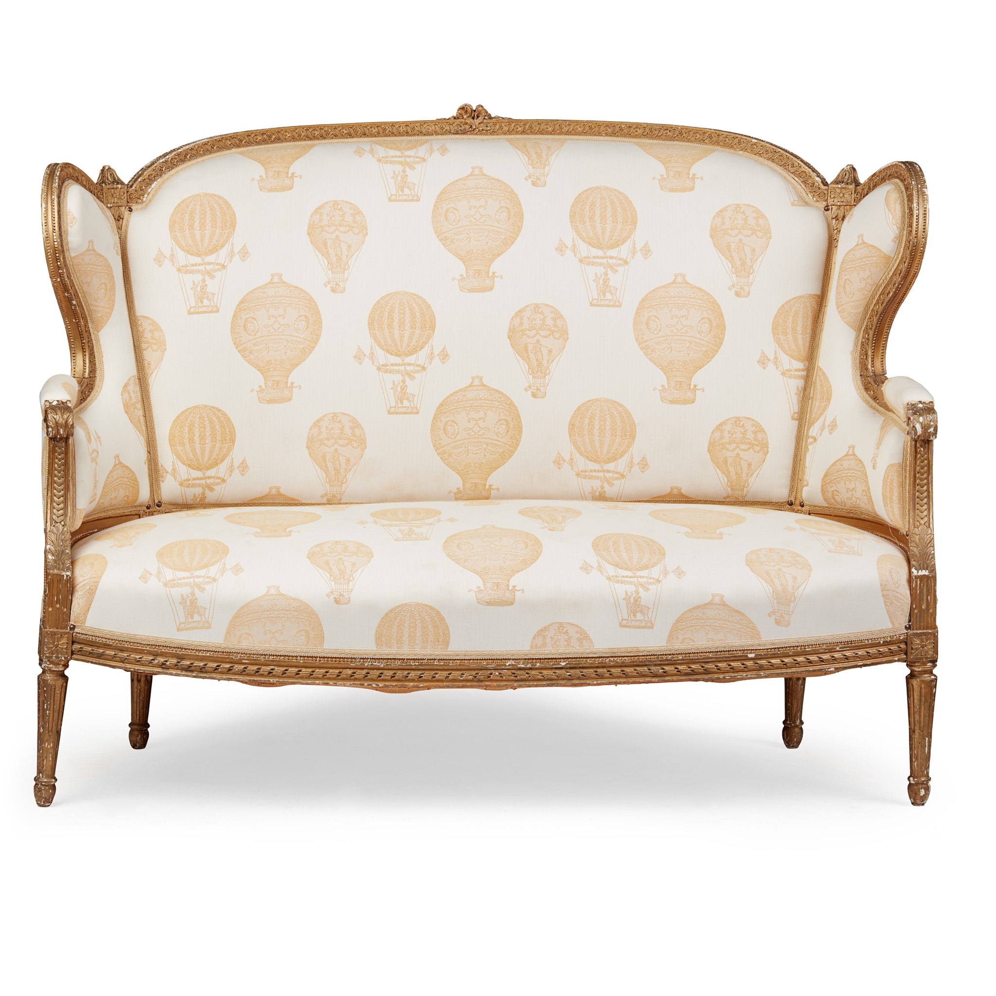 LOUIS XVI STYLE GILTWOOD CANAPÉ À ORIELLE