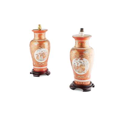PAIR OF JAPANESE KUTANI PORCELAIN VASE LAMPS