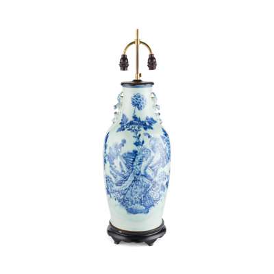 LARGE CHINESE BLUE AND WHITE PORCELAIN VASE LAMP