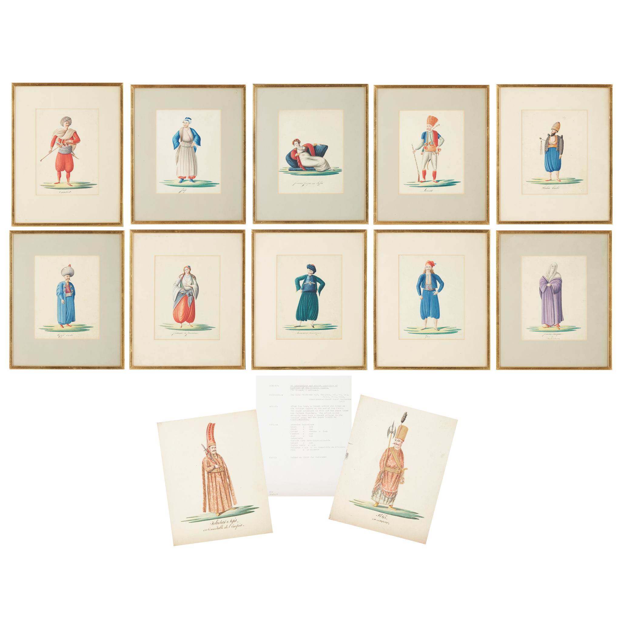SET OF TEN FRAMED WATERCOLOURS OF ORIENTALIST COSTUMES