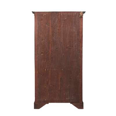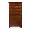 the moulded cornice above a dentil moulded frieze, over a pair of short drawers and six graduated long drawers, on bracket feet