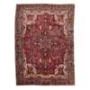 the dark red field with dark indigo medallion, ivory spandrels, within dark indigo border