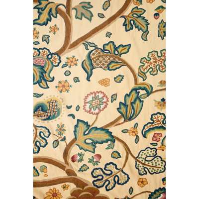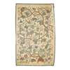 worked with wool on buff canvas, depicting a tree of life, with buff backing, green passementerie fringe hooks for hanging