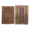 one with narrow dark indigo field, red border; the other with brown field, narrow red border (2)
