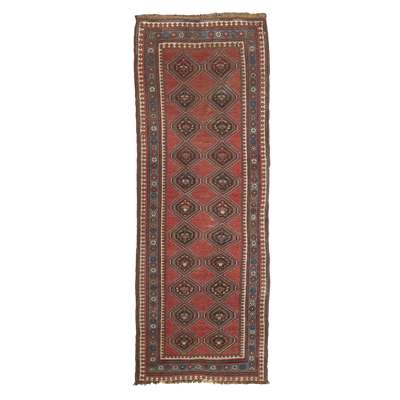 the red field with two columns of lozenge medallions, within narrow indigo border