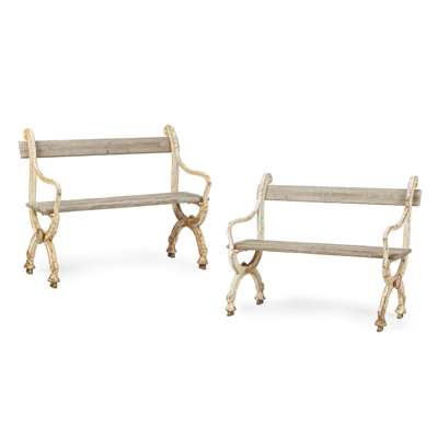 PAIR OF FRENCH CAST IRON AND WOOD GARDEN BENCHES