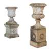 TWO SCOTTISH FIRE CLAY URNS AND PEDESTALS