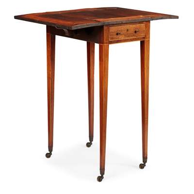 GEORGE III ROSEWOOD AND SATINWOOD DROP-LEAF LAMP TABLE Y