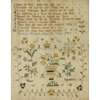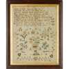worked in silk with the Ten Commandments, over a field centred by a flowering urn and named floral specimens including ‘tulip’, ‘Rose’, ‘vilot’ and ‘Jessamin’, with a coronet, birds, and hearts, all enclosed within a meandering floral border, in a scumbled reeded frame
