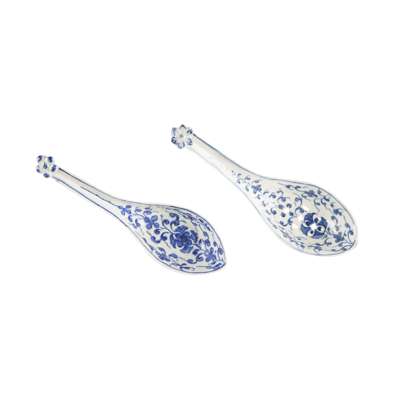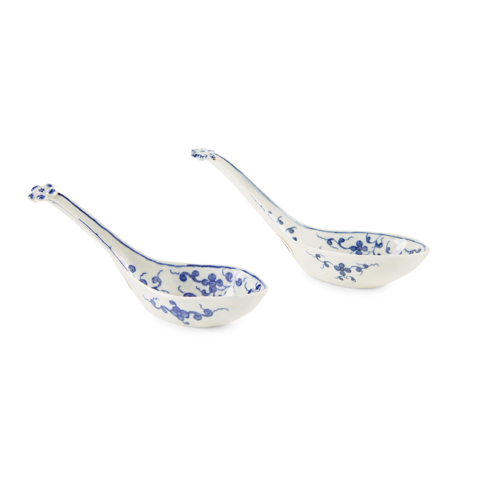 Note: The form is inspired by the Chinese rice spoon, but the exact purpose of the English porcelain rice spoon is unknown. The plain shape and flat handle made them difficult to use, except as a small ladle. The same shape of spoon with a pierced bowl was probably used as a sifter spoon.